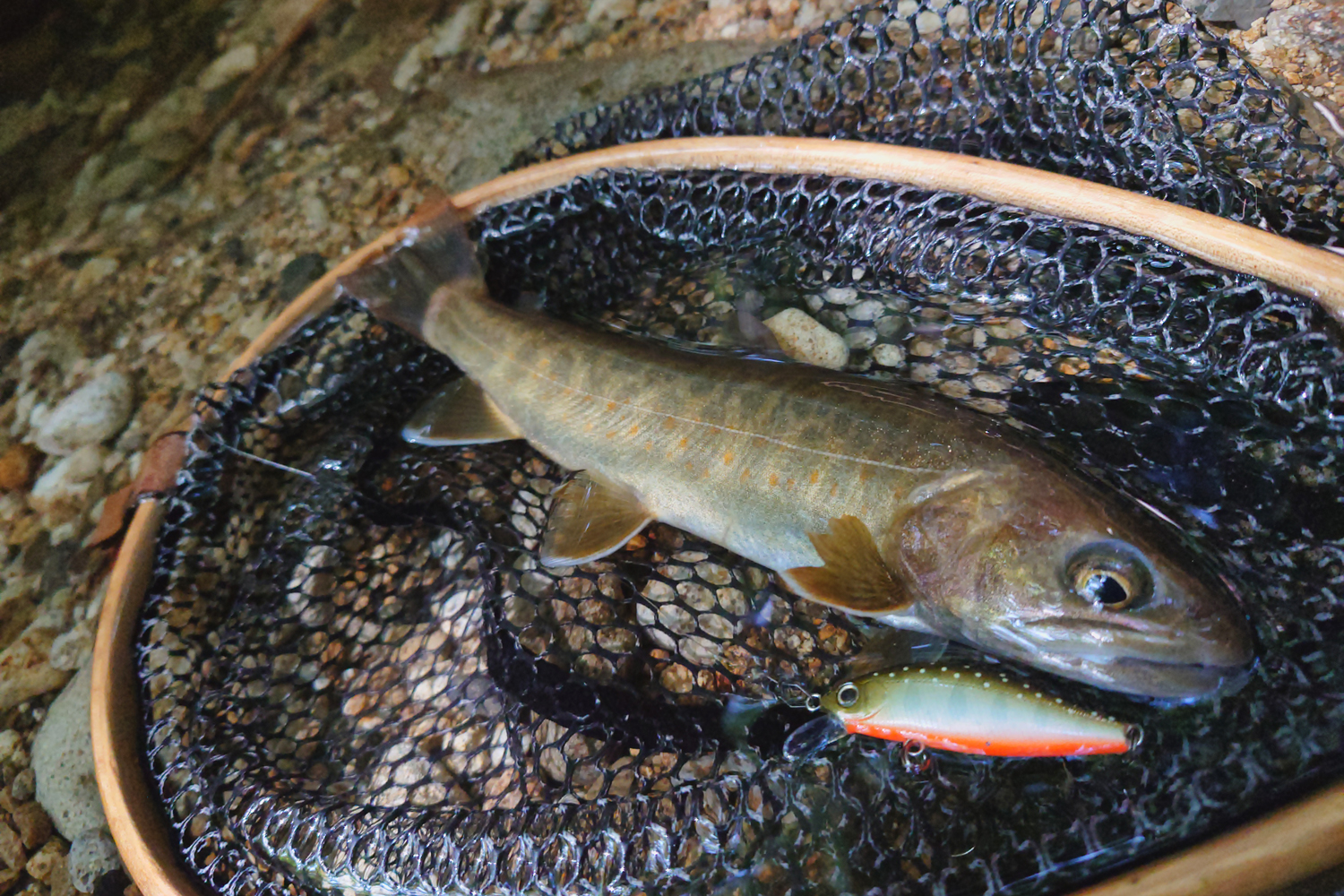 開始直後からイワナの反応が続きます。そこそこのサイズが反応してくれるので、それなりに楽しめます。