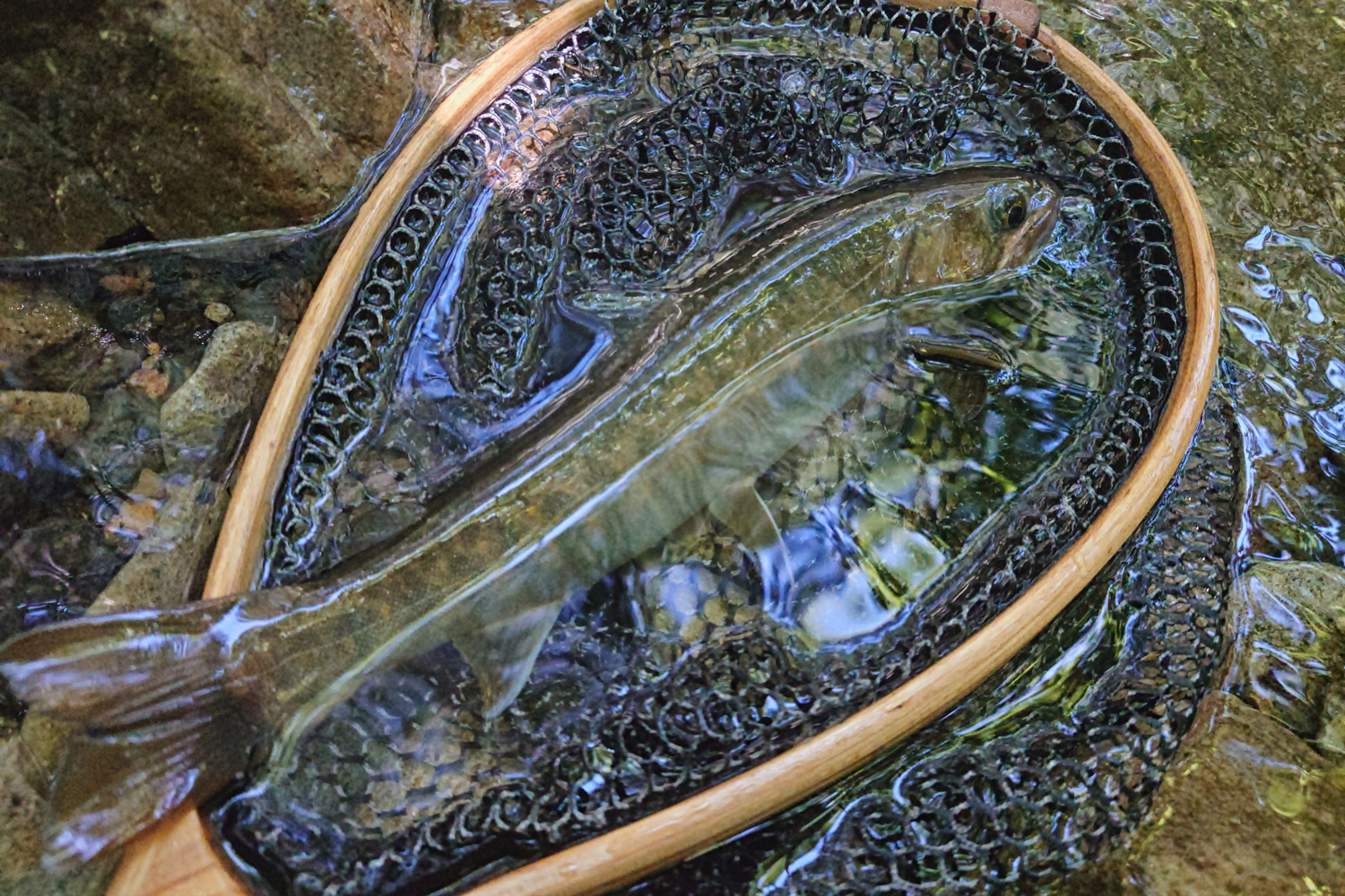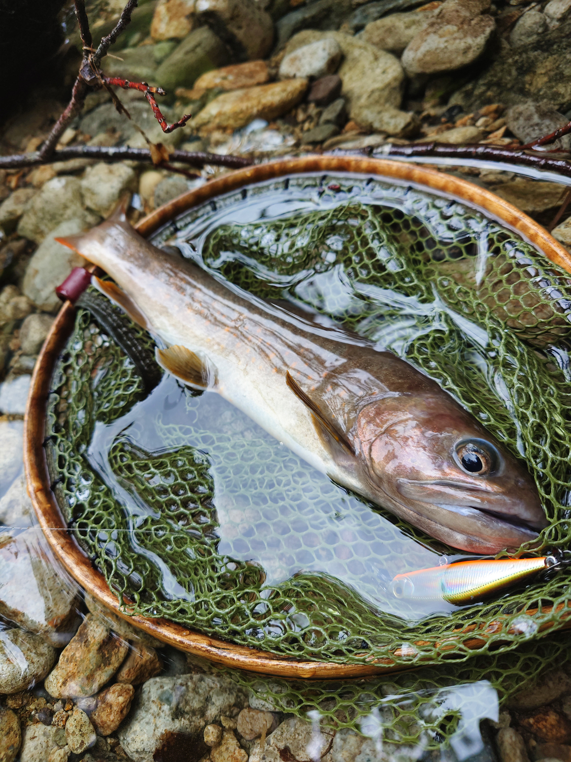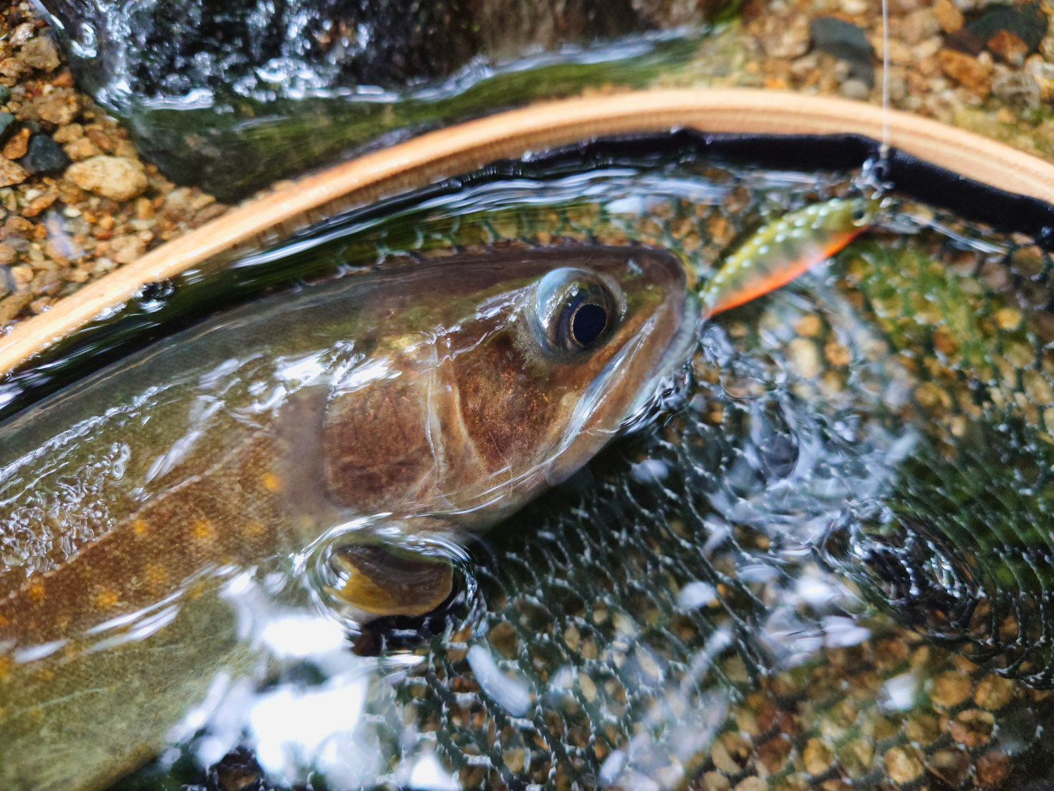 綺麗な魚体の魚が多いので傷つけないように注意して、撮影、リリースして遡行していきます。